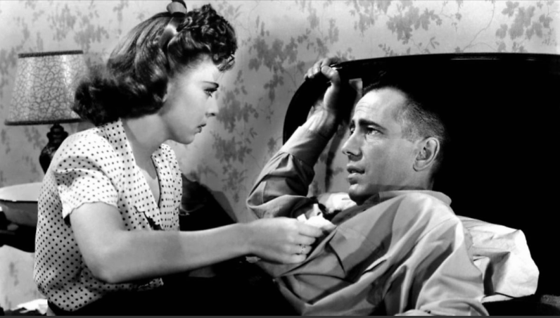 鲍嘉接下来的一部电影,柯蒂斯·伯恩哈特(Curtis Bernhardt)的《冲突》(Conflict,1945),是他早在1943年6月就推脱无果的项目。当时杰克·华纳给他打了一通很长的电话,一边以停职威胁他(这对鲍嘉来说不是什么新鲜事,他曾多次因拒绝出现在二流作品中而被停职),一边试图奉承他接下这个角色[xii]。在通话末尾,鲍嘉让华纳“烧掉这个剧本,忘了它”,但华纳坚持己见,于是鲍嘉无奈拍了这部片子。在《冲突》里,他饰演一个外人看来婚姻幸福的男人,他谋杀了自己的妻子(罗斯·霍巴特Rose Hobart饰)以便跟她妹妹(亚历克西斯·史密斯 Alexis Smith饰)求爱,但他一直被自己内心的愧疚感所困并最终被绳之以法。这部影片的结果正如贝尔默(Behlmer)冷淡的评价,“该片通常不被看作鲍嘉的上成之作。”[xiii]
