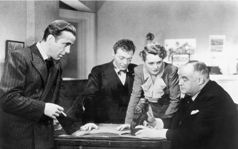 关于《马其他之鹰》的文章数不胜数,尽管它是一部拍摄日程很紧的、预算仅为31.8万美元的中等成本影片。有了扮演主角萨姆·斯佩德(Sam Spade)的鲍嘉、达希尔·哈米特(Dashiell Hammett)撰写侦探小说的神来之笔以及强大的全明星阵容——包括首次出演电影的西德尼·格林斯垂特(Sydney Greenstreet)、玛丽·阿斯特(Mary Astor)、彼得·洛(Peter Lorre),以及出演一个小而关键的角色的“浪子”专业户小伊莱沙·库克(Elisha Cook Jr.),这部影片呈现为一个环环相扣、引人入胜的谜团。在斯佩德公寓中的最后一幕是影片的高潮,所有主角全部在场,剧本有整整35页的对白。休斯顿要求——并实现了——在拍摄这场戏之前用一整天的时间排练,而事实证明这是值得的。这部电影拍摄历时34天,比原计划提前了两天,且在预算内完成[vii]。当然也不可避免一些重拍场景,但影片一问世便好评如潮——以至于杰克·华纳一度想邀请达希尔·哈米特写一部续集。不过值得庆幸的是,这一计划最终未被落实[viii]。