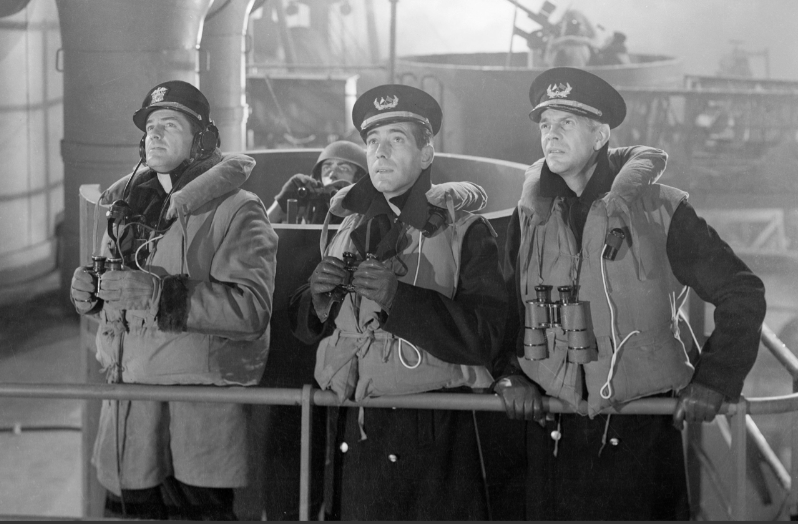 这一次,鲍嘉的后续作品终于配得上他的才华:劳埃德·培根的《73舰队潜艇战》(Action in the North Atlantic?,1943,拉乌尔·沃尔什和拜伦·哈斯金参与执导但并未署名),关于二战的最伟大的电影之一。故事围绕战争期间的商业海事服务展开,他们在纳粹潜艇经常巡逻的危险航道上向海外运送急需的人员和武器补给。鲍嘉饰演海员乔·罗西(Joe Rossi),一个典型的工人阶级,听命于雷蒙德·马西(Raymond Massey)饰演的典型威权形象,船长史蒂夫·贾维斯(Steve Jarvis)。这部电影最精彩的桥段是贾维斯船长指挥的自由船“海女巫”号(Sea Witch)和一艘纳粹U型潜艇之间的漫长追逐,后者由威廉·冯·布里肯(Wilhelm von Bricken)饰演的一位无名军官担任舰长,他在现实生活中是第一次世界大战期间的德国间谍。所有德国潜艇员在整部影片中都只说德语,没有字幕或德英对话。这样处理的结果是呈现出了一场无情的、令人心跳加速的猫鼠游戏,使该片成为1940年代早期最好的战争电影之一。
