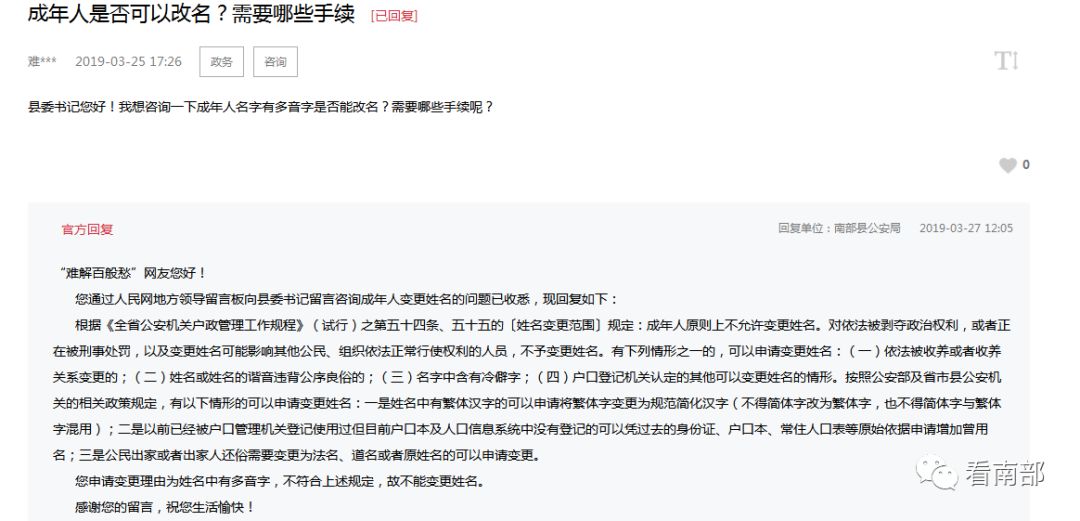 近日,有网友在地方留言板留言:成年人名字有多音字是否能改名?需要哪些手续呢?