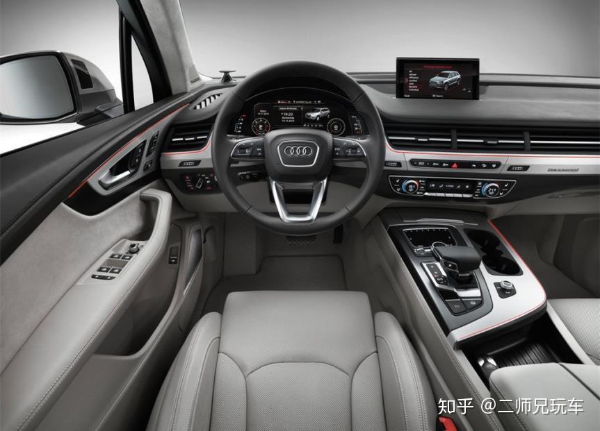 看完了外观进入到车内,关于内饰部分多说两句:我始终认为内饰对于驾乘(实际使用)者来说是跟外观同样重要的,甚至重要优先级还会略高于外观。毕竟广传的一句话是:外观是给别人看的,内饰才是给自己看的。虽然有点夸张但是说到底跟自己打交道最多的还是内饰,这部分不仅包括了内饰的造型设计、用料水平,更为重要的是内饰的人机工程学设计,说得简单一点就是一些控制系统是不是方便我操作,会不会影响我正常驾驶(这也是最近几年HUD、中控屏幕位置上调的一个原因)。三款车中,奔驰的内饰可以说是最“陈旧”的,被全新GLE那科幻感十足的内饰甩了得有五六条街吧;Q7的内饰设计很出彩,全液晶仪表科技感十足,整个中控造型设计又最为简洁有种浓郁的德国工业风;宝马的内饰还是一贯的风格,主观感觉桃木纹的饰板略显老气不过全新一代X5的内饰进步不小。