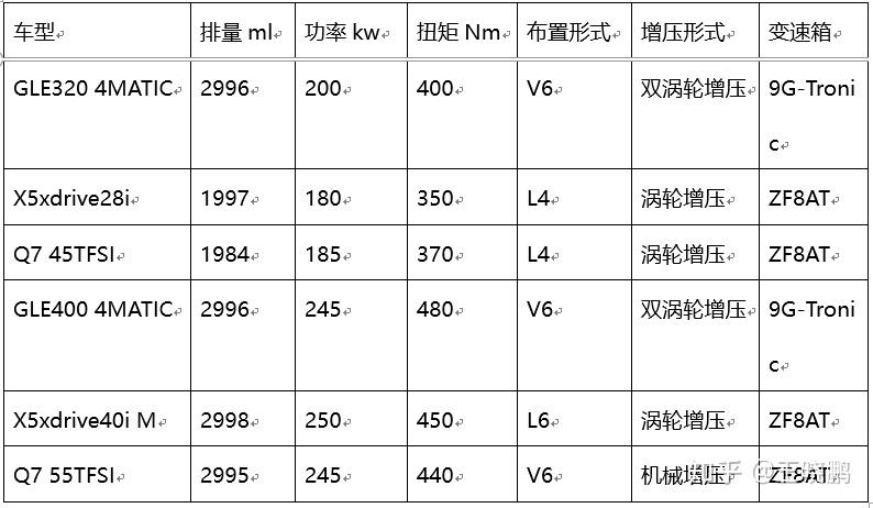 这种级别的SUV 3.0T还是主打,奔驰跟宝马都是涡轮增压,奥迪选择的是机械增压。奥迪跟宝马都只提供一种调教,分别是245KW跟225KW,奔驰跟大众一样过于鸡贼,给多少钱出多少力,GLE有200KW,245KW,270KW三种调教,价格差距也不小。但不管怎样,动力感最充沛,驾驶感最棒的毫无疑问还是宝马X5,那套直六涡轮机跟ZF的8AT已经被调教得炉火纯青,天衣无缝。