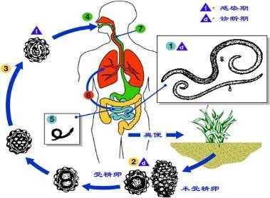 所以,蛔虫的一生并非完全待在肠道里,绝大多数时间它们是以幼虫形态在人体的肠-肝-心-肺里往来穿梭的!
