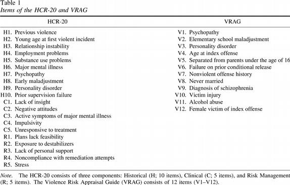 拥有最坚实的理论基础和受到最广泛验证的“结构性专家判断”工具是Historical/Clinical/Risk Management - 20 (HCR-20),它由historical(历史的),clinical(诊断上的),risk(风险)三部分一共20个因素组成,其中Historical的10个因素与VRAG的静态因素基本重合。