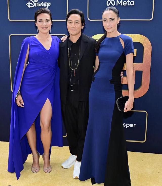 原来他们夫妻俩受邀出席电影活动,跟他们一同合影的电影制片人刚好也叫Lisa,吴彦祖笑言,自己被夹在了Lisa三明治里面,相当幽默。