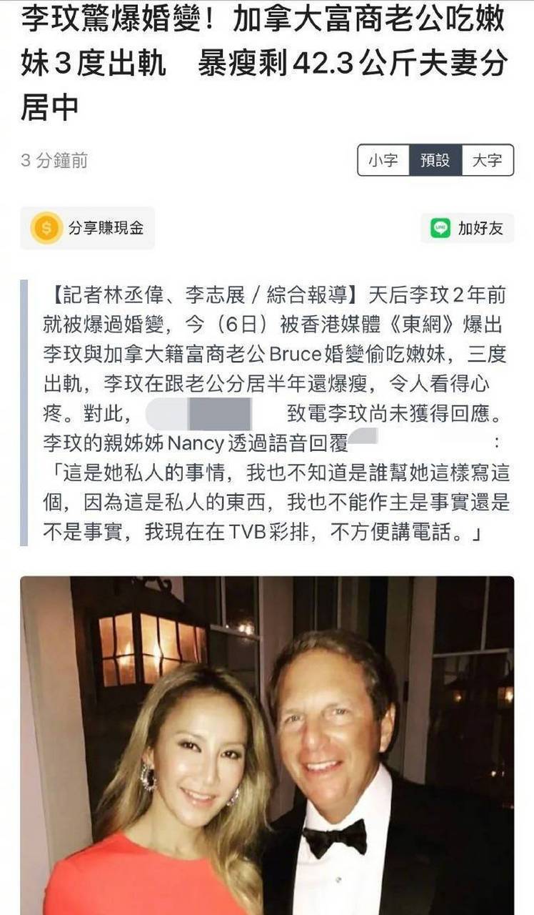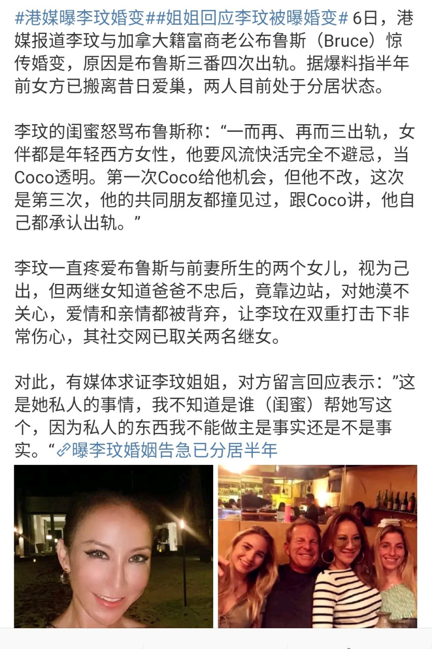 而李玟的丈夫Bruce,却屡屡因为疑似出轨,和妻子的感情即将崩溃。