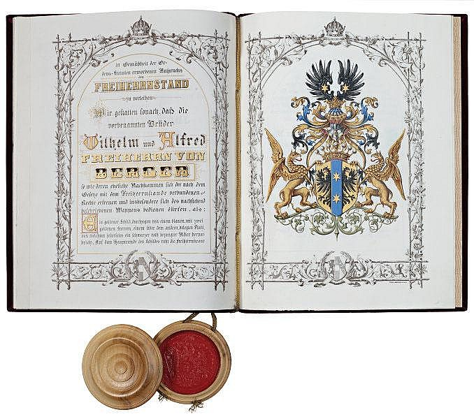 1878年,册封威廉和阿尔弗雷德·贝格尔兄弟为男爵的诏书