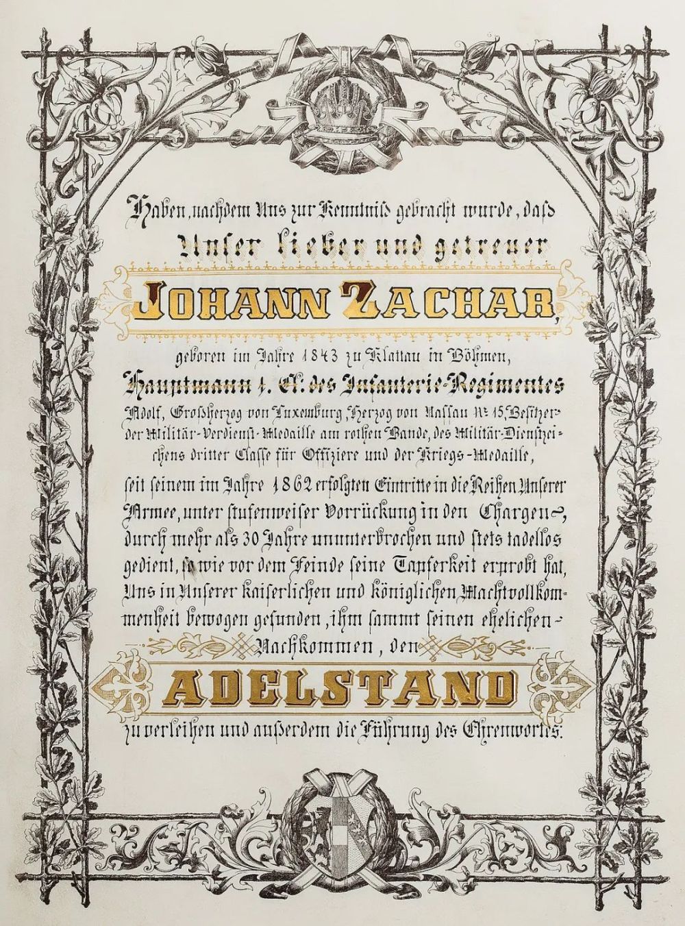 1893年,一名上尉获得弗朗茨·约瑟夫皇帝的贵族封授,成为“体制贵族”