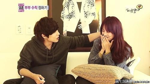 这一对也是很厉害啊,作为维尼小叔子的佑荣向打了鸡血似的节目中各种和妻子的肌肤接触啊,听说后来的一对夫妇因为佑荣的肢体接触不敢上节目了哈哈哈,看的出来节目中的佑荣是真的欣赏自己的妻子的,从一开始MBC就是按照张佑荣的理想型挑选的女方,也难怪我们佑荣喜欢死了哈哈。