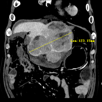 术前影像检查显示肝脏巨大肿瘤