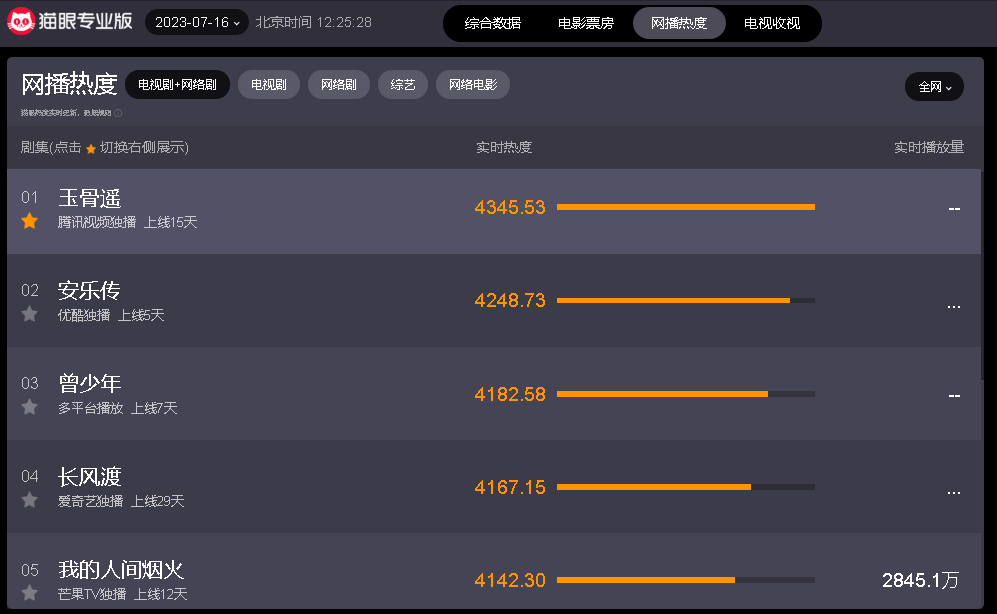 手机访问:wap.265xx.com网播热度最高的五部剧《我的人间烟火》垫底《安乐传》跌至第二