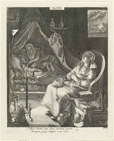 埃基希认为,这幅珍·赛恩热达姆(Jan Saenredam)1595年的雕版画是夜间活动的可靠证据。? BRITISH MUSEUM