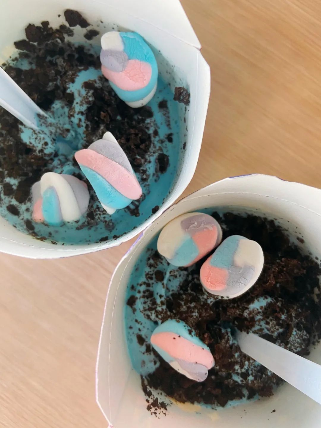 天真的蓝色表层再撒上甜脆的奥利奥碎、棉花糖。简直没有比它更适合儿童节的了!