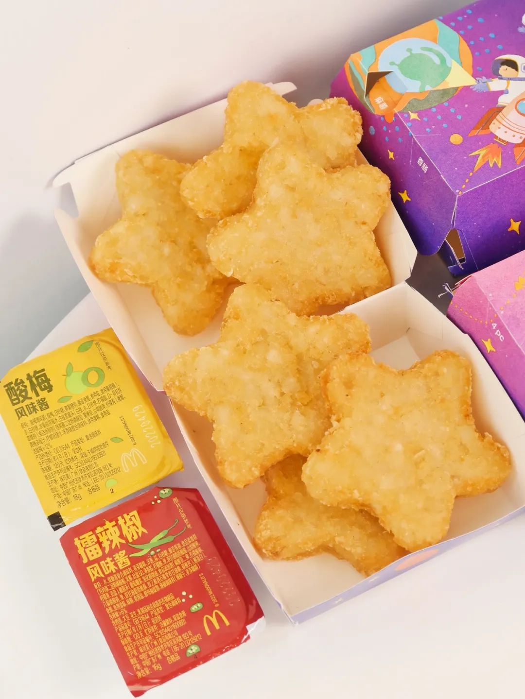 还不能少了小食。这次麦当劳的薯饼选了童趣满满的星星形状,是那种外表酥脆、里面颗粒感十足的口感。