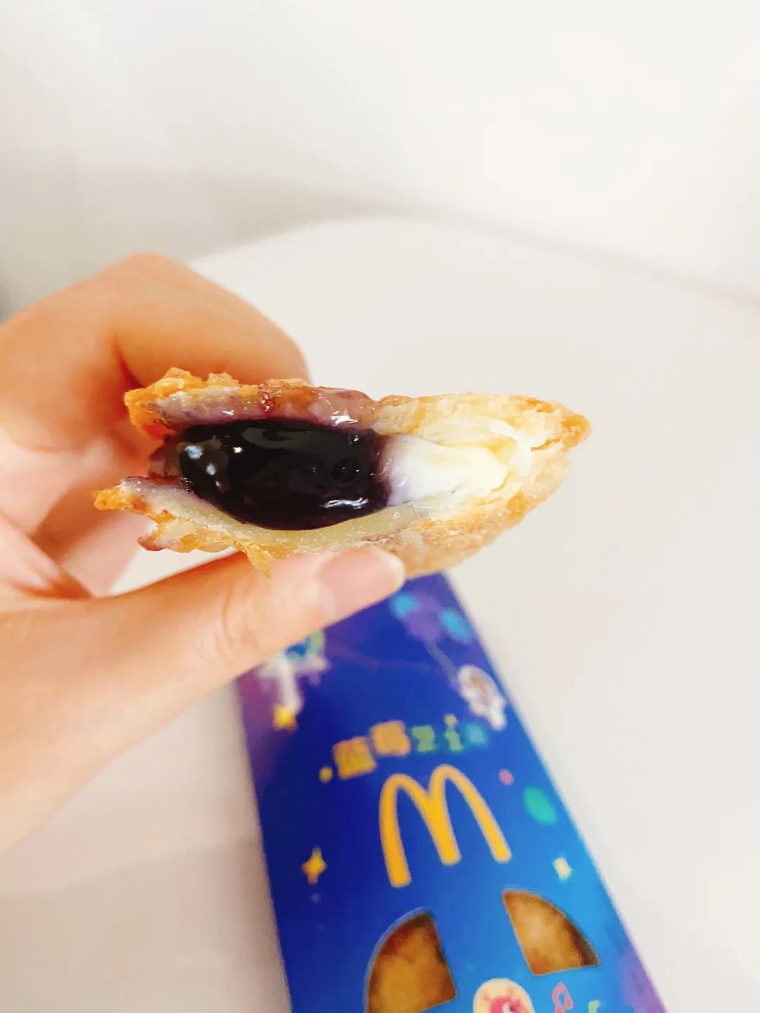 咬开外层酥皮,蓝莓和芝士内馅马上流出,太香了,真的太香了。