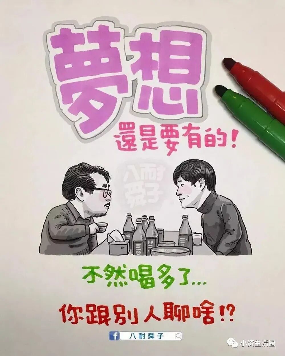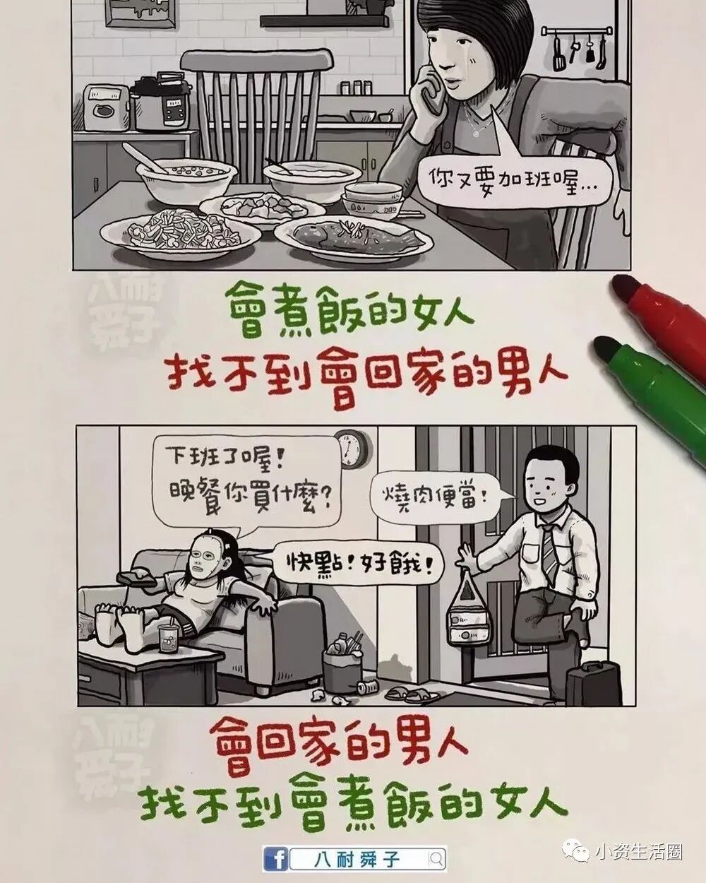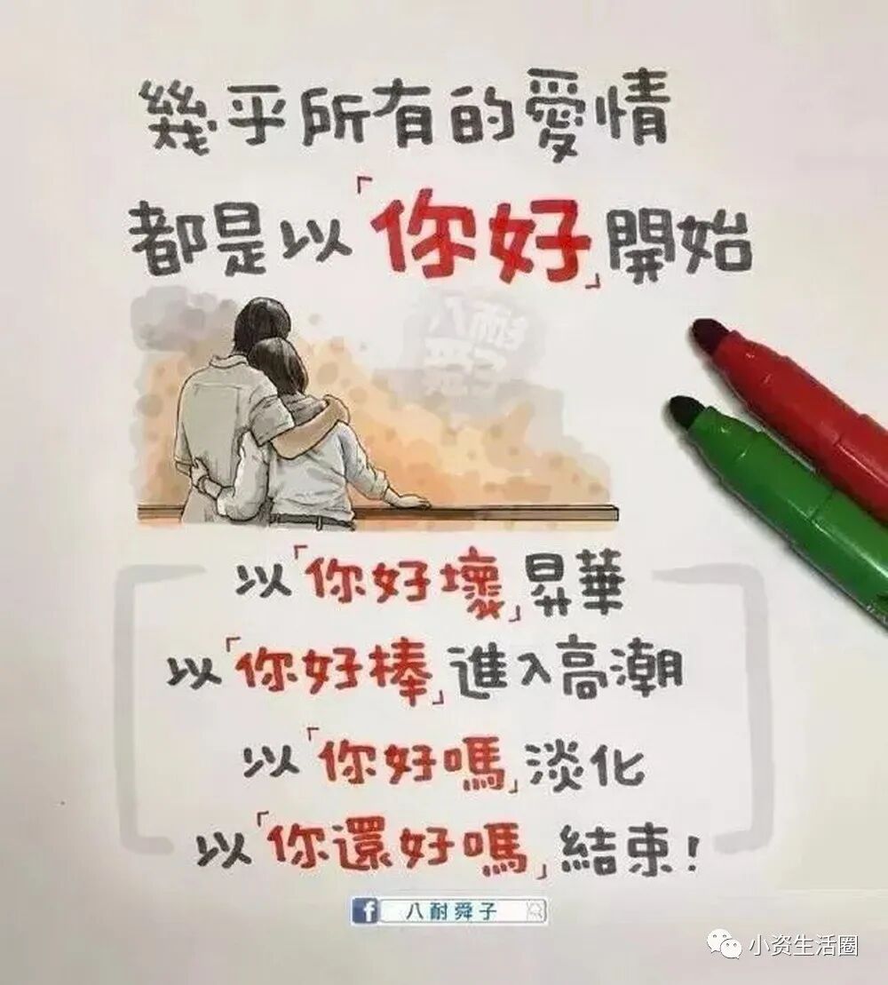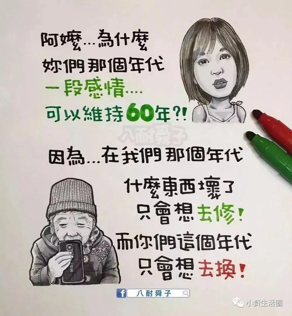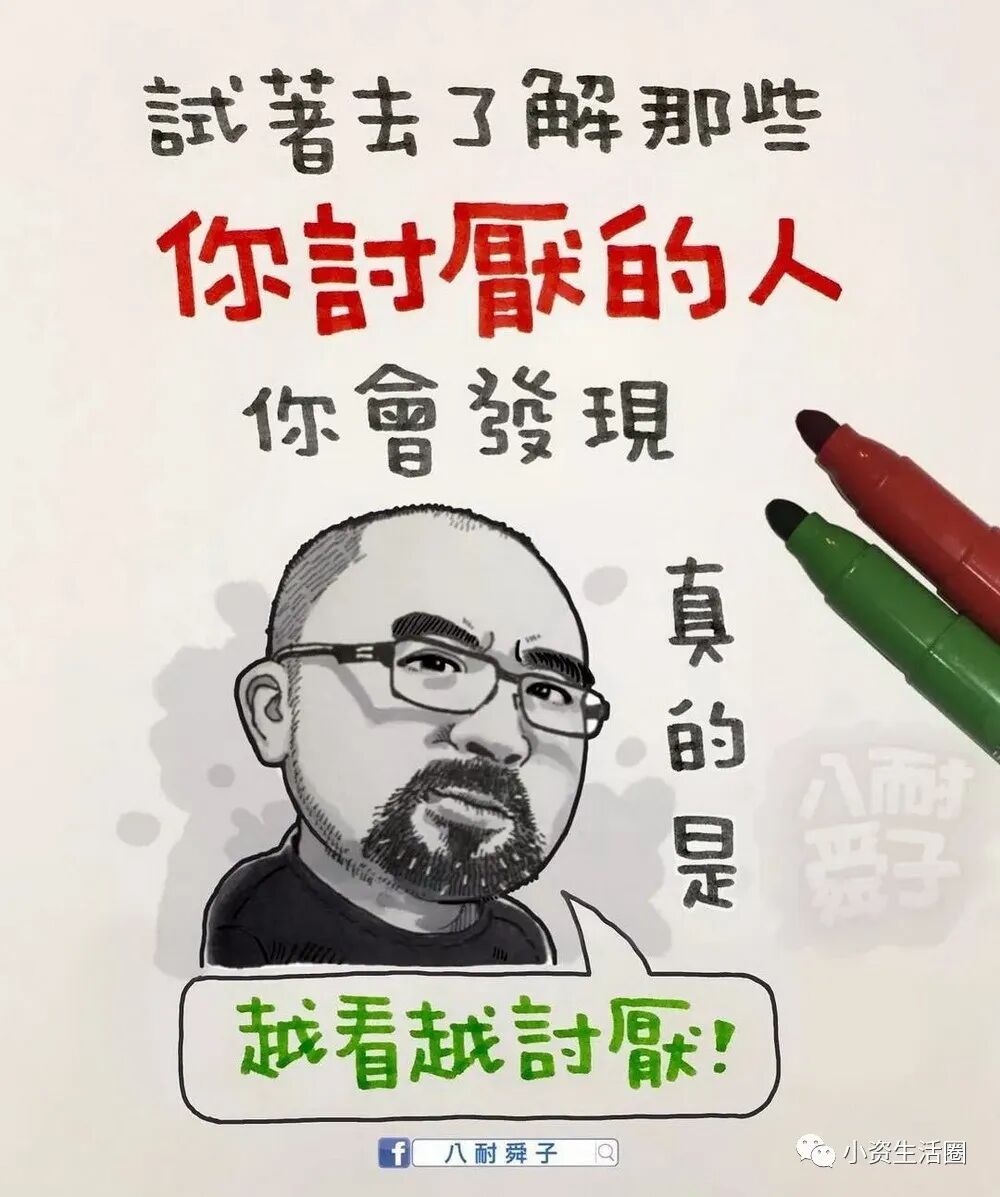 阅读本文前,请您先点击上面的“蓝色小字”,再点击“关注”,这样您就可以继续免费收到最新文章了。每天都有好看的图文、视频。与您共赏~百万人追随的八耐舜子,老婆是他的天!台湾漫画家“八耐舜子”,非常善在幽默中揭露成年人的现实生活!一页纸一幅图几句话,即让一个个人生道理顿时跃入眼帘。他说:“ 喜乐的心,乃是良药 。”如此达观的人,定会有惊世的漫画。在此特别精选他的40幅手绘作品,一起来细品蕴含其中的,成年人的辛酸和悲喜!