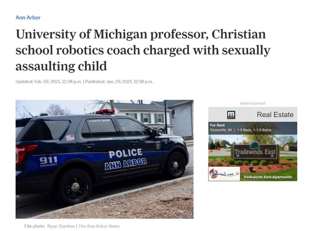 12月5日,密歇根大学电气工程和计算机科学华裔教授Ming-Chien Chen性侵未成年少女一案,正式宣判: