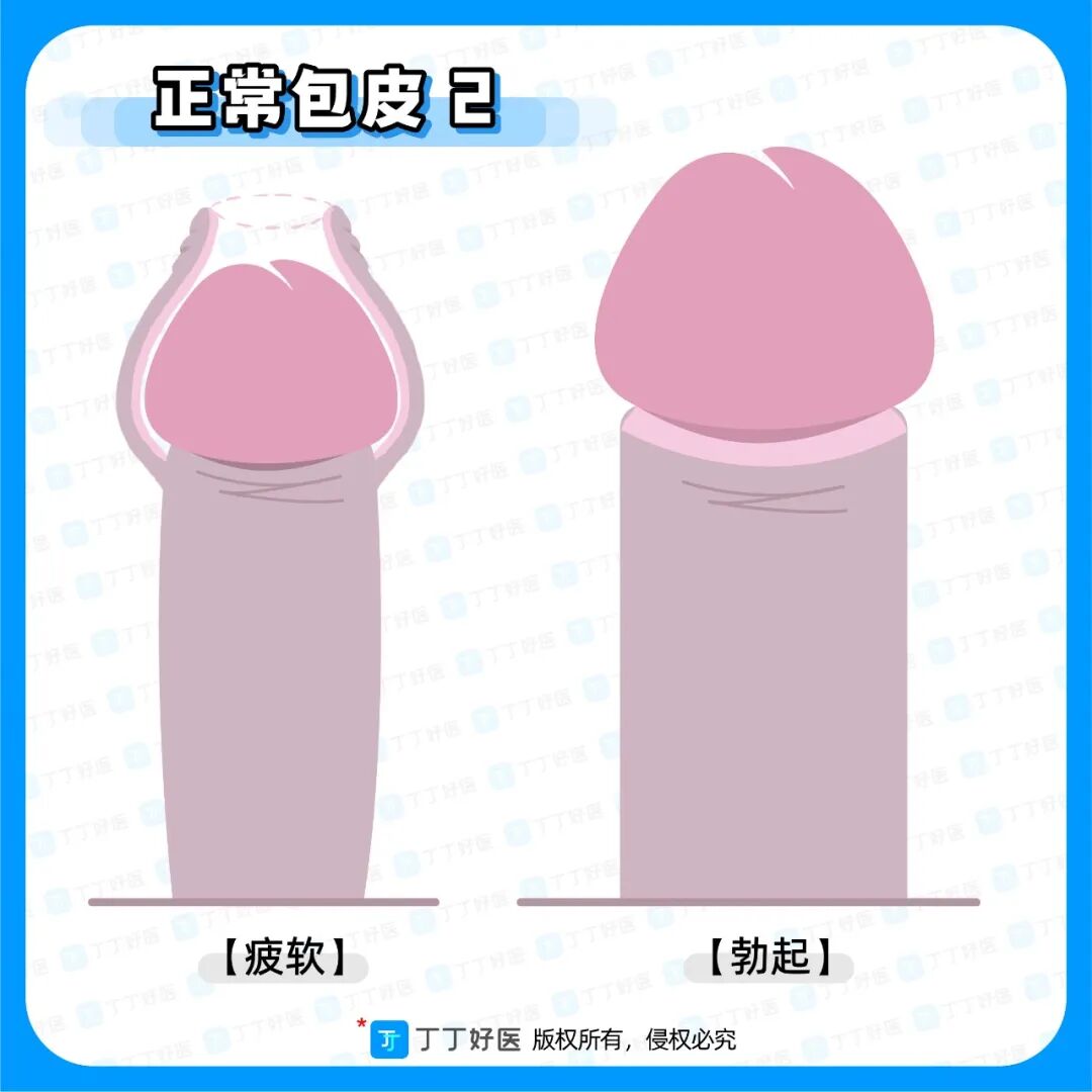 阴茎在疲软状态下,包皮龟头完全或大部分露出;阴茎在勃起状态下,包皮龟头能完全露出,我们称它为正常的包皮状态。