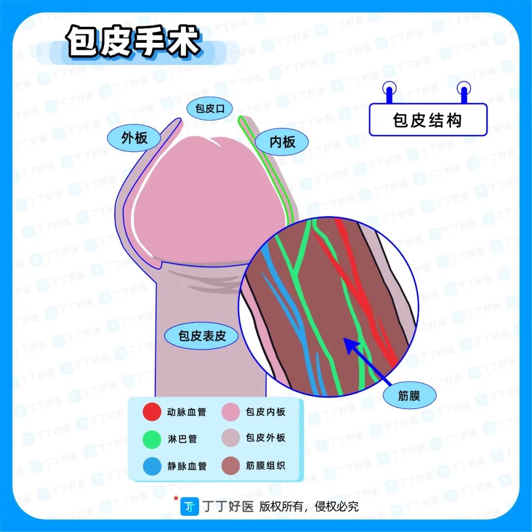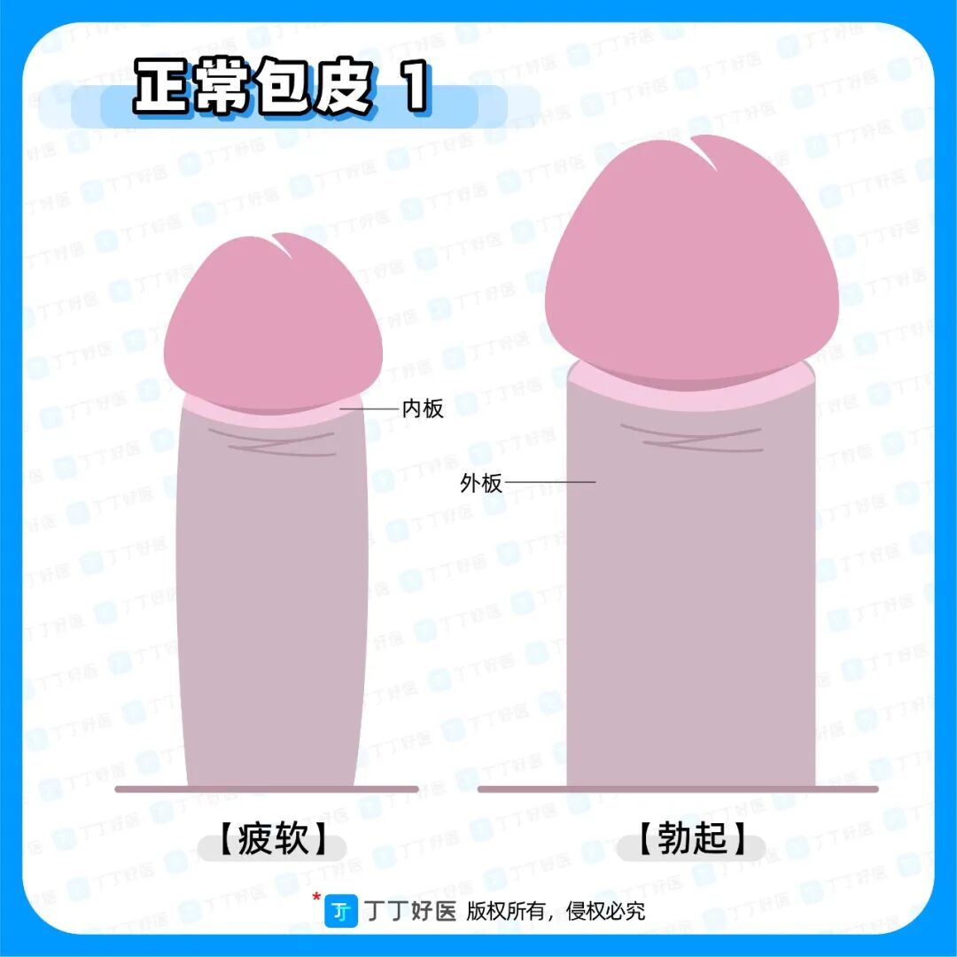 在回答这个问题之前我们还需要了解下包皮内外板知识:外板就是丁丁外边的包皮;而内板则是连接着冠状沟覆盖龟头的包皮。
