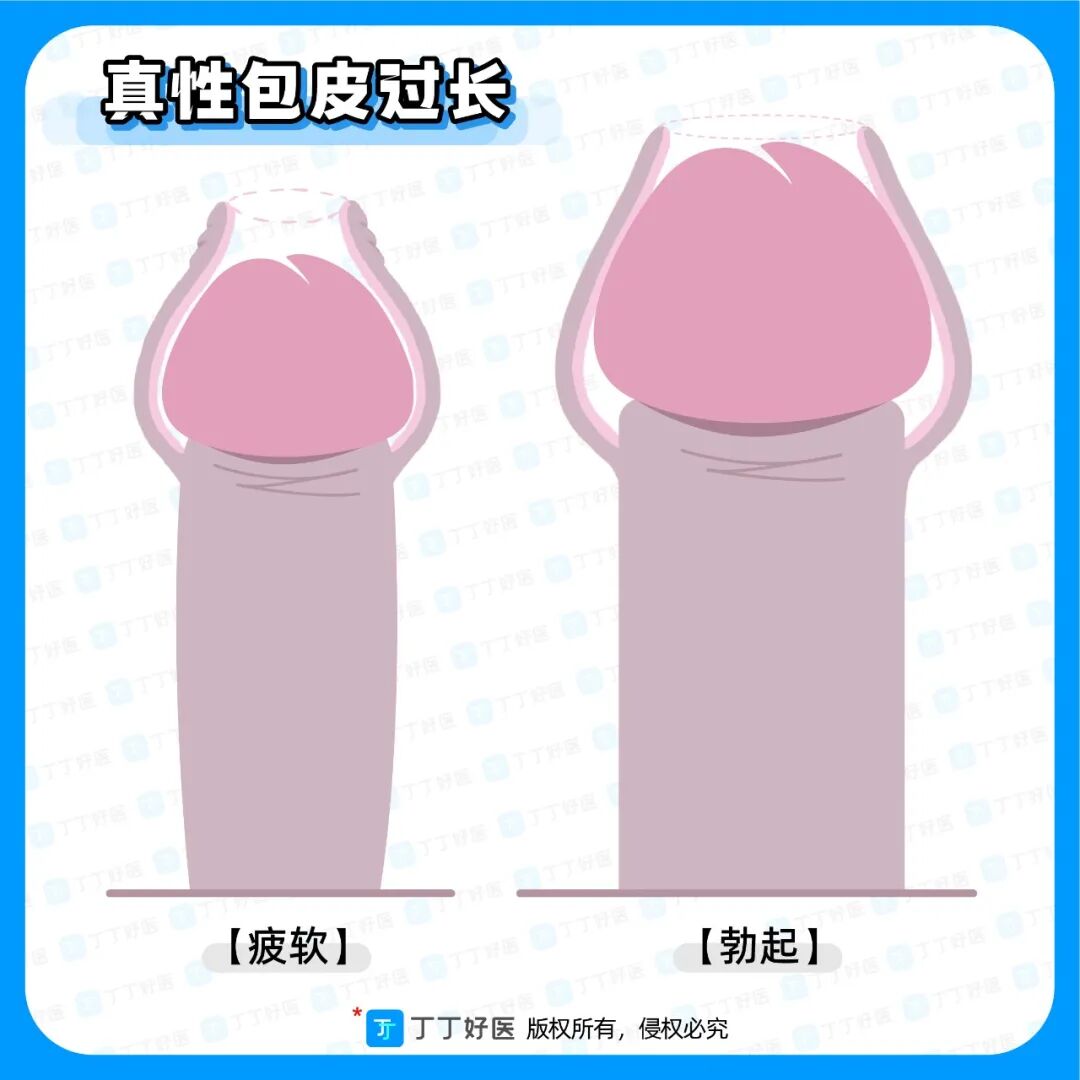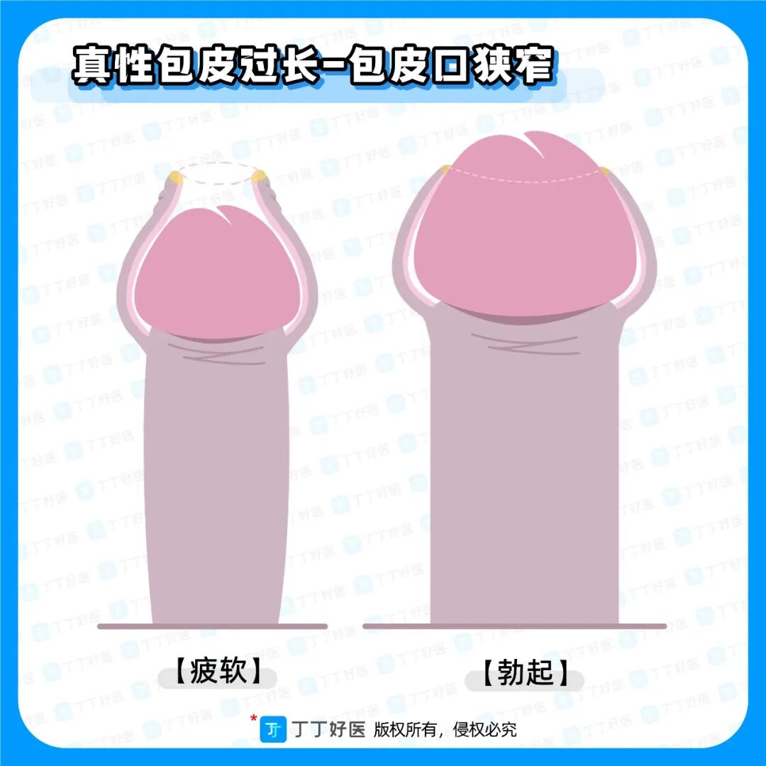 上述定义的两种包皮过长,也被丁丁分别称为真性包皮过长和假性包皮过长。