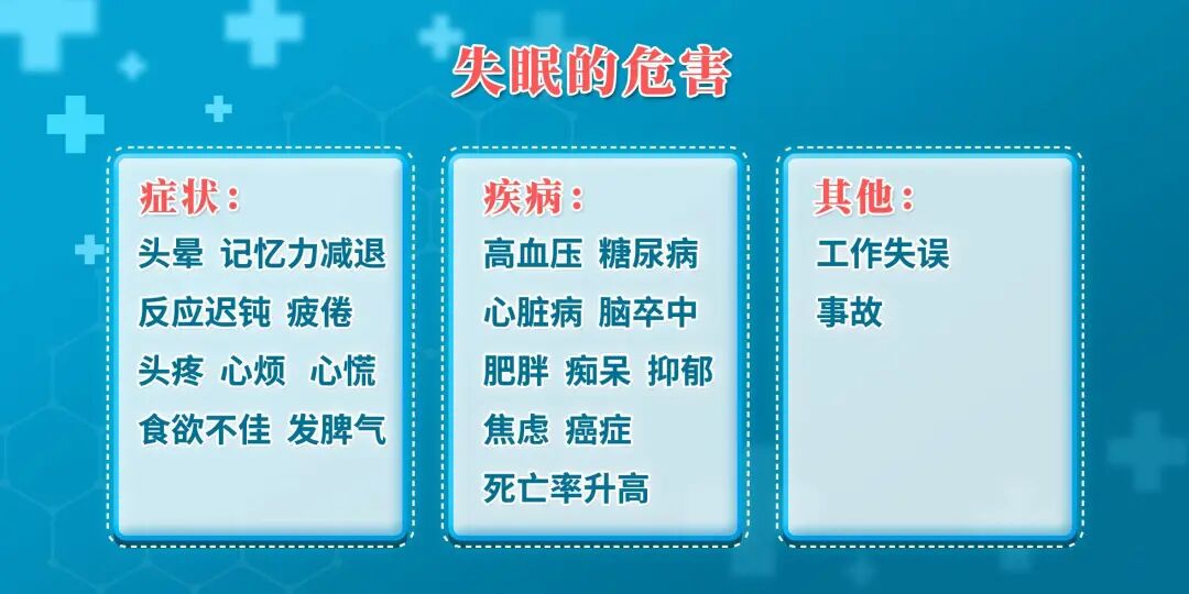 看了这么多失眠的坏处,对于睡眠问题我们一定得重视起来,那么究竟是什么原因导致失眠?又有些什么助眠的方法呢?我们将在今天的节目中为大家揭晓,感兴趣的朋友,记得准时收看哦~