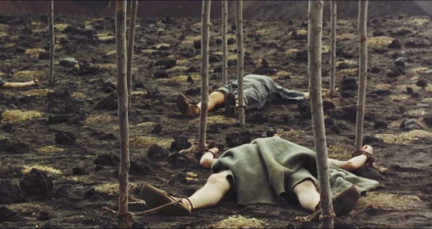 寓言是更适合阅读还是观看?是适合舞台剧还是电影去呈现?在1965年一篇颇具影响力的文章《诗歌电影》(The Cinema of Poetry)中,诗人帕索里尼解释了为何对这种不拘一格的形式感到满意。他说,语言是一种媒介,有一套成文系统,明确定义的句法语法,而电影不是,它是一种梦幻的视觉,比起媒介更能有效地传达复杂思想。当然,文学才是帕索里尼的最爱。文学束缚于结构和数百年语言规则的限制,于他而言,文学这一媒介更意气相投,尤其是他在《定理》《猪圈》《索多玛120天》三部电影里感兴趣的表达。