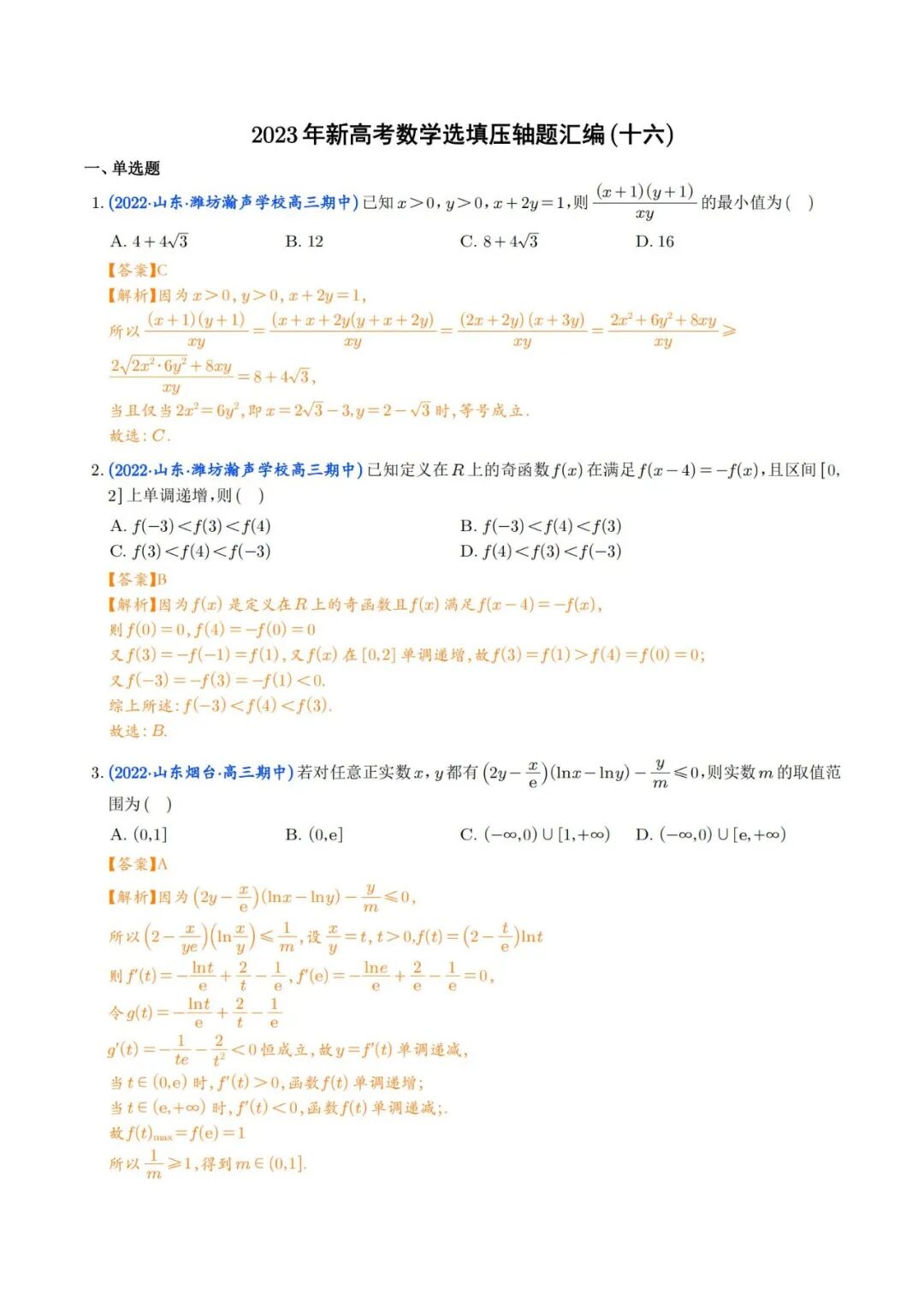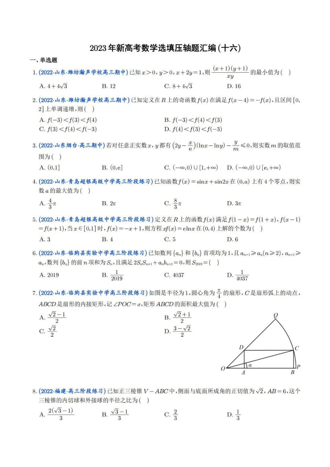 手机访问:wap.265xx.com2023 年新高考数学选填压轴题汇编附详细解析 (十六)