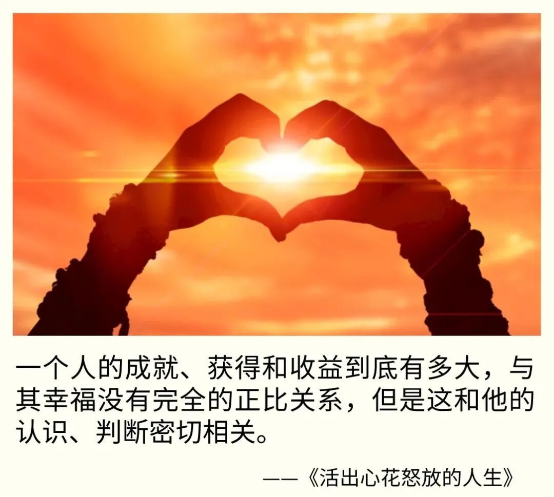 人际关系越好,生活越幸福哈佛大学曾做过一项史上最长的“幸福感”研究,该研究总共追踪了724位成年人,研究人员对他们的工作、生活、健康状况进行了调查和分析。其中有一项结果显示,良好的人际关系是人们生活幸福的重要因素,无论他们的出身背景怎样。在我们和父母、伴侣、子女之间、朋友之间,甚至是在职场上和领导、同事之间,任何一部分人际关系出现矛盾,都会影响我们的身心体验与幸福指数。书里分享了一个真实的案例。一名叫做柯林斯的集团员工,在大企业工作,有较高的收入,但他并没有觉得很快乐。当他和患有自闭症的学生互动,看到这位孩子在他的长久关爱下开始学习,并且说出了“我爱你”时,柯林斯才感受到了前所未有的幸福。作者建议,想拥有愉悦的生活体验,必须要建立和谐的人际关系。我们可以从微笑、分享、付出这最简单的三方面开始做起。微笑会让我们看起来更真诚,能拉近彼此的距离。学会分享,能让一种美好的幸福感受在双方之间流动。而懂得付出的人,更能从中收获巨大的满足,对方也因此感受到自己被尊重和关心。罗曼·罗兰说,“谁要在世界上遇到过一次友爱的人,体会过肝胆相照的境界,就是尝到了天上人间的欢乐。”一个人只要持续和社会发生联系,从各种人际关系中体验到彼此的友爱和关照,他便会在这种能量的流动中,获得情感的满足。而他的生命,也因此更加丰富绚烂。