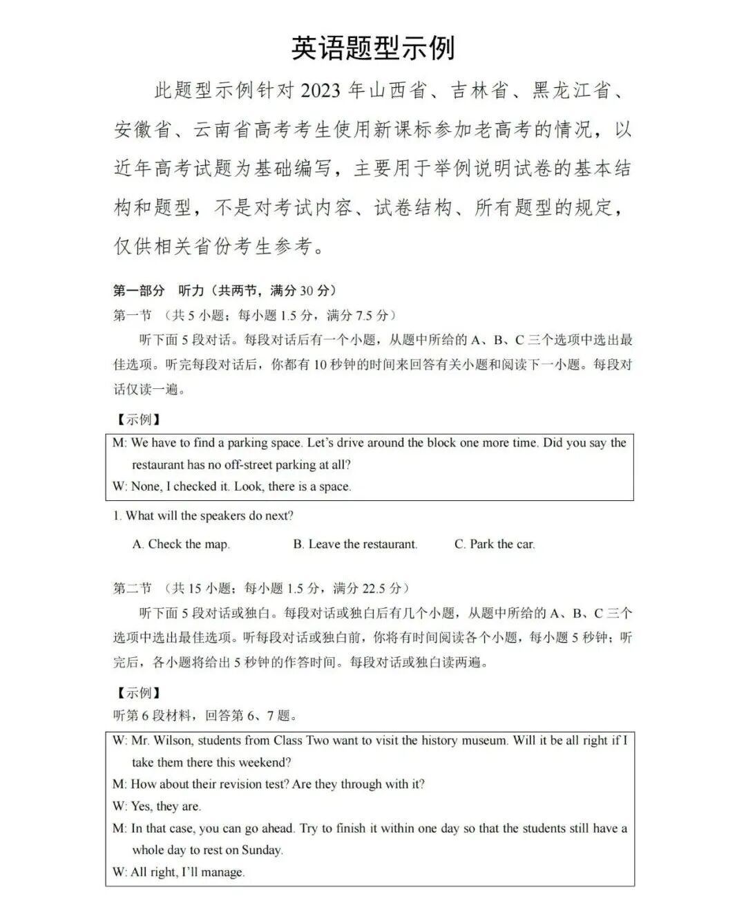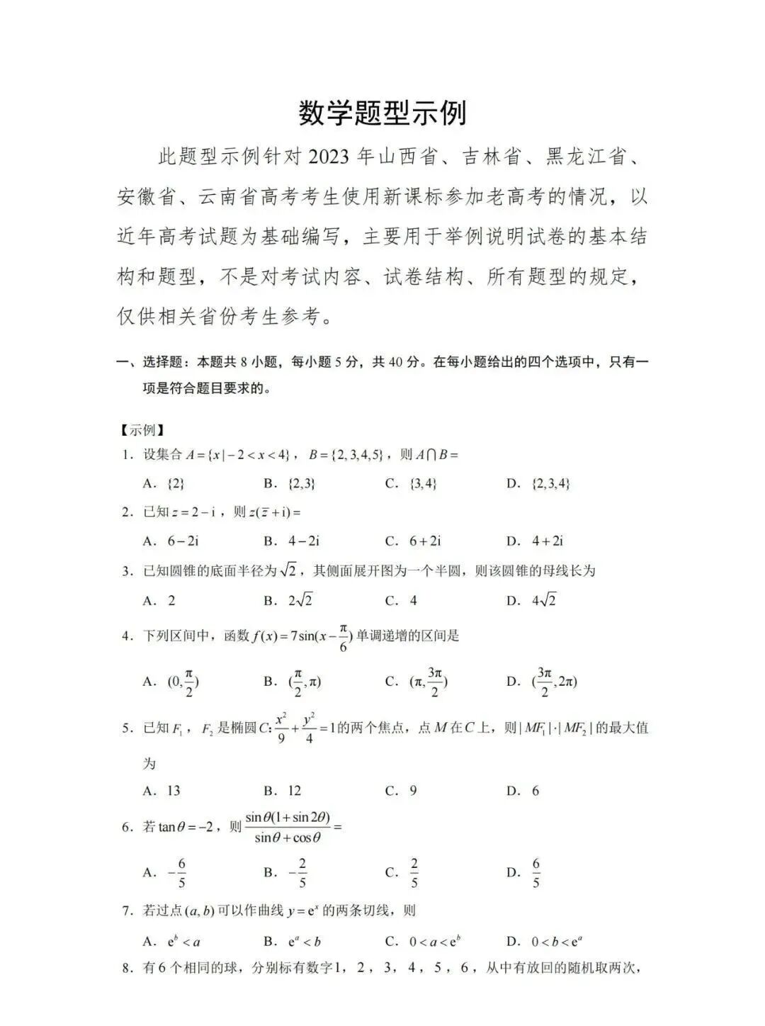 手机访问:wap.265xx.com参考!2023年新课标老高考全科题型示例