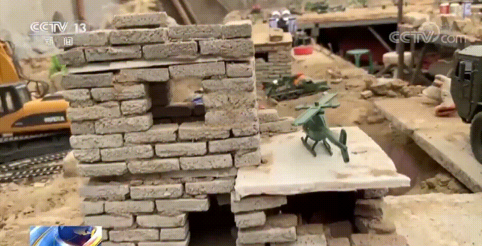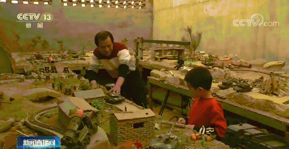 飞机、大炮、坦克……各种玩具都准备好后,寇爸爸开始将游戏升级:搭建沙盘、堆起连绵的假山、挖出蜿蜒的河流和沟壑,让儿子动手用小树枝做栏杆。直到一个微缩战场搭建完毕。