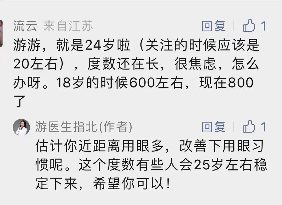 前几天有粉丝留言,说自己今年24岁了,但近视度数还在涨,已经从18岁时候的600度涨到现在的800度了。
