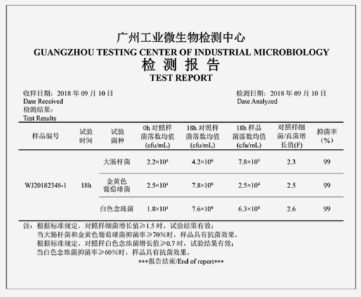 有棵树这款内裤裆部采用了抗菌材料。它的抗菌效果到底有多厉害?附上检测报告,用数据说话: