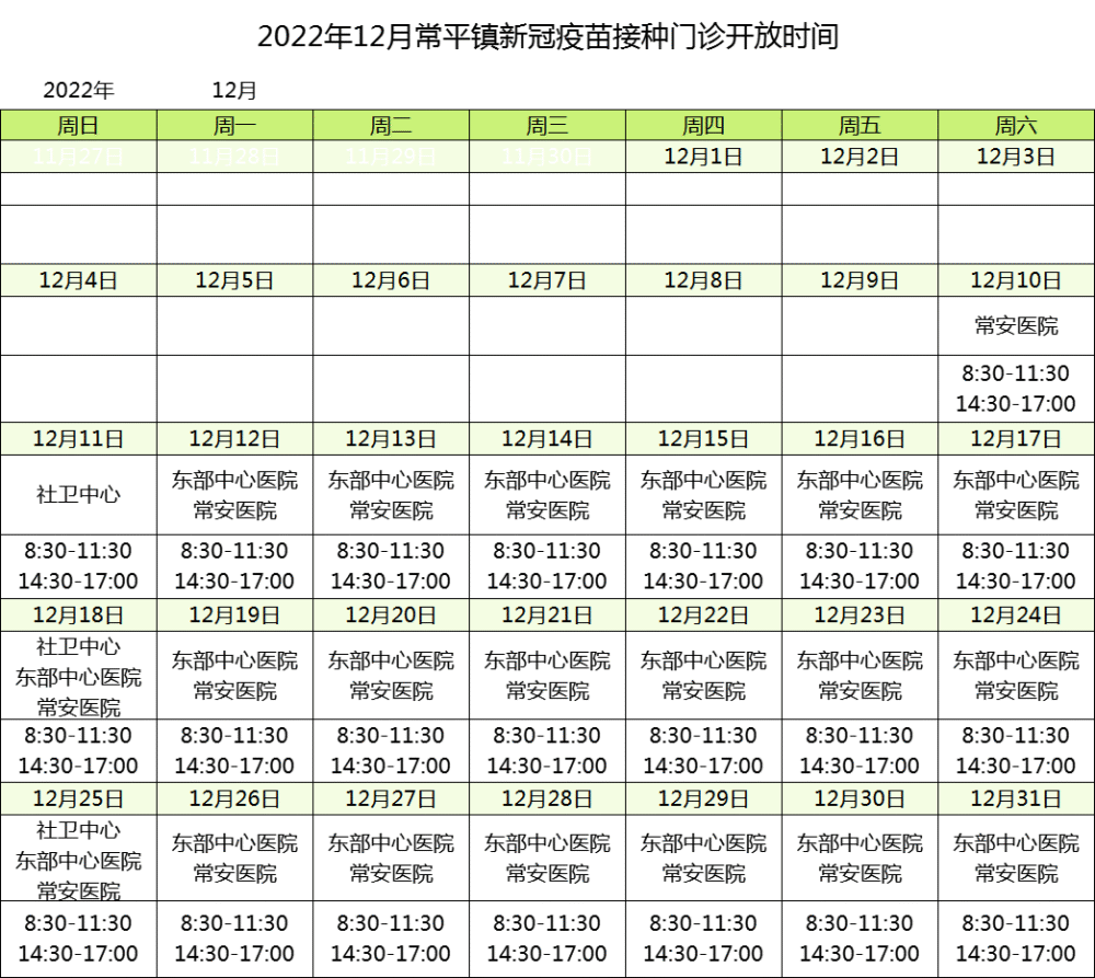 各新冠病毒疫苗接种点开放情况可参考以下表格(实际以接种点公布为准):