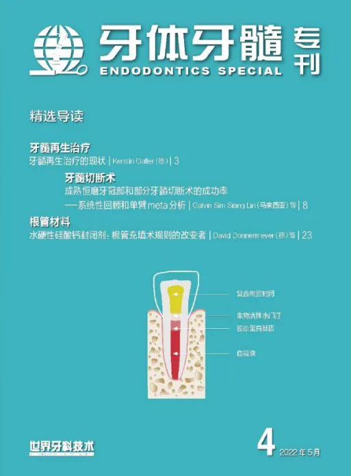 本文原载于《世界牙科技术》2022年第4期《牙体牙髓专刊》第38-45页。作者:K.Galler(德),S.Martina(意)等翻译编校:刘峰团队幅面尺寸:210 mm x 285 mm页码:48页出版时间:2022年4月