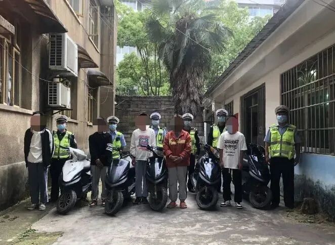 民警见状,立即组织警力将“车队”拦下检查,在要求出示驾驶证等相关证件时,9名少年抓耳挠腮,东张西望拿不出来!初步证实的确是“未成年”,无证驾驶,便将五名少年及其车辆,带回中队作进一步调查处理。