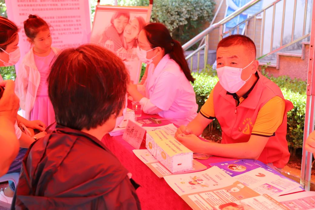 活动现场,前来咨询的小区居民络绎不绝,医务人员为居民免费测血糖、量血压,不仅开展了常规义诊服务项目,还针对出生缺陷、“两癌”筛查、宫颈癌疫苗接种、孕前优生、儿童保健等方面,提供了咨询服务。党员志愿者向小区居民发放健康教育宣传资料,宣传消除艾滋病、梅毒、乙肝母婴传播等知识及省市政府民生实事项目免费政策,并为现场群众准备了手提袋、口罩、消毒湿巾、抽纸、雨伞等小礼品。