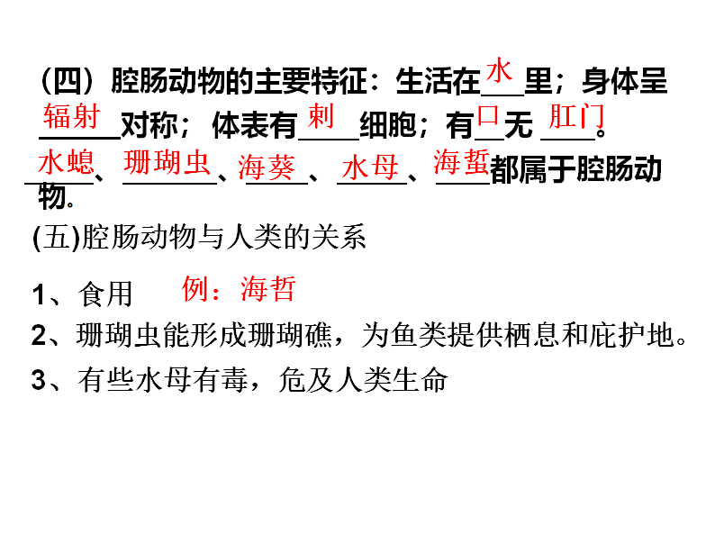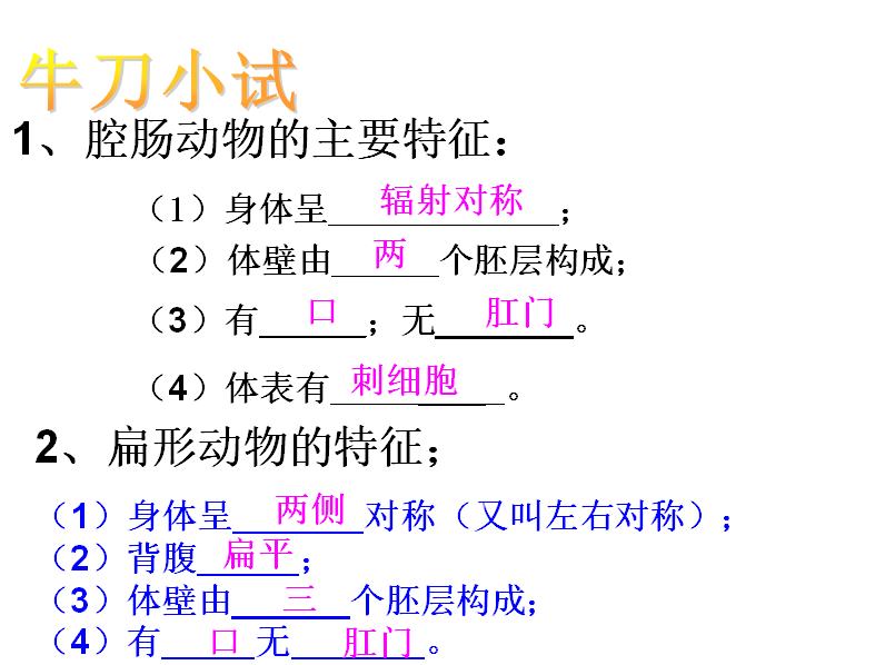 (3)识记腔肠动物和扁形动物的主要特征。