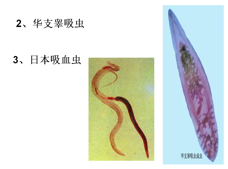 2.涡虫和华枝睾吸虫形态结构和扁形动物的主要特征