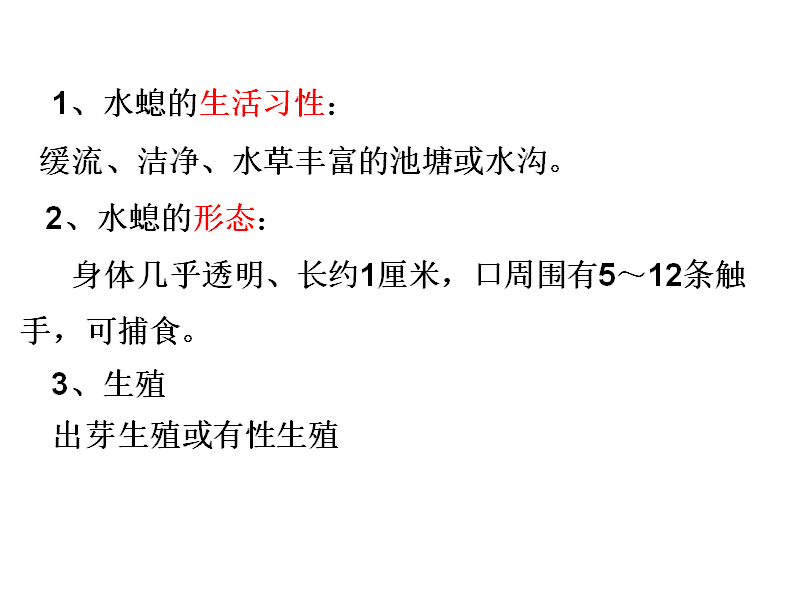 过渡,刚刚我们认识了水螅的形态结构特点。现在我们来了解一下水螅的繁殖。