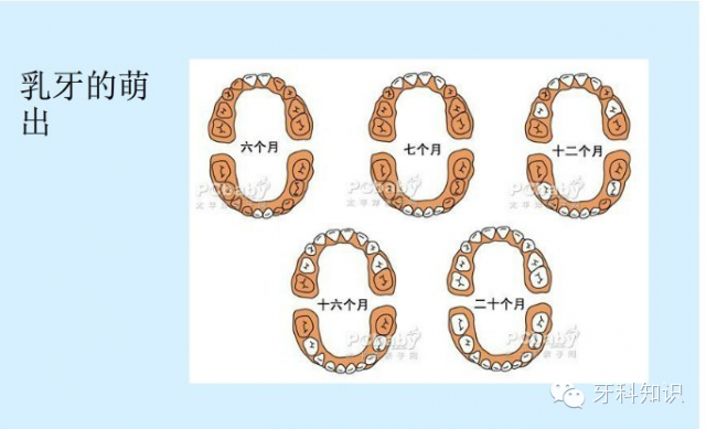 人的一生中就只有两幅牙齿,乳牙和恒牙。小孩子6岁之前只有乳牙,没有恒牙的。乳牙一般半岁开始萌出,两到三岁开始萌完,总共20颗乳牙。(详见下图)