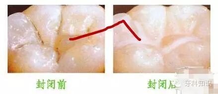 (1)、做窝沟封闭。原理就是在大牙的窝沟处涂上一层保护剂,有的窝沟太深的变浅,同时也保护了牙釉质不被龋坏。(见下图)