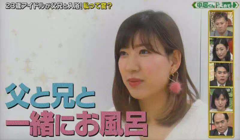 在日综《中居くん決めて!》中,日本23岁女星北见直美向大家自爆经常同爸爸、哥哥一起冲凉,自己觉得很正常,但是周围朋友都觉得不可思议,于是向节目组曝光了一起洗澡的画面。