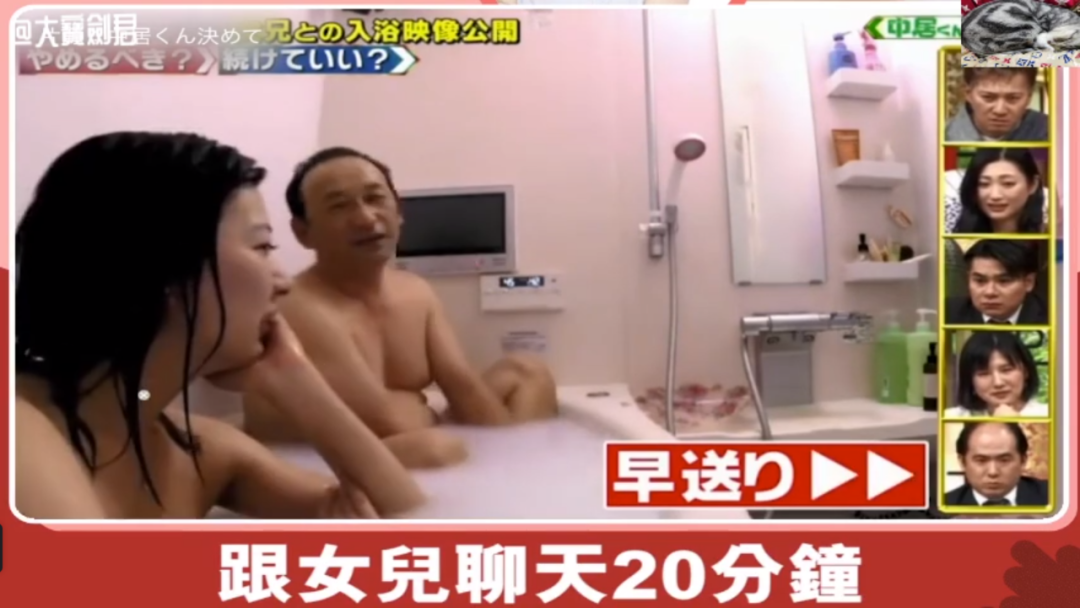 三人洗澡共耗时2小时,原来并没有我们想象的尴尬和诡异,就像是日常家庭活动罢了,毕竟大家之前都没有一家人共浴的情景。对于我们难以接受的共浴文化,直美一家的想法却都很简单。哥哥对妹妹并没有别的感觉,普通地像是跟兄弟一起入浴一样。爸爸妈妈认为浴室是个很重要的地方,共浴可以更好地沟通交流,就算吵架了也能在这里和好。