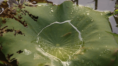 下个镜头就是一尾被困在荷叶浅水里的鱼。