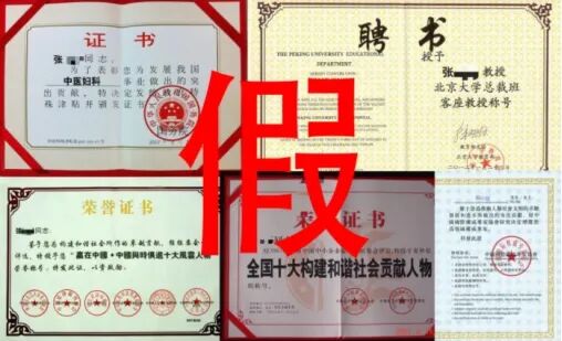 ▲这张拼版照片,均为“心灵茶吧”嫌疑人制作的假证书。