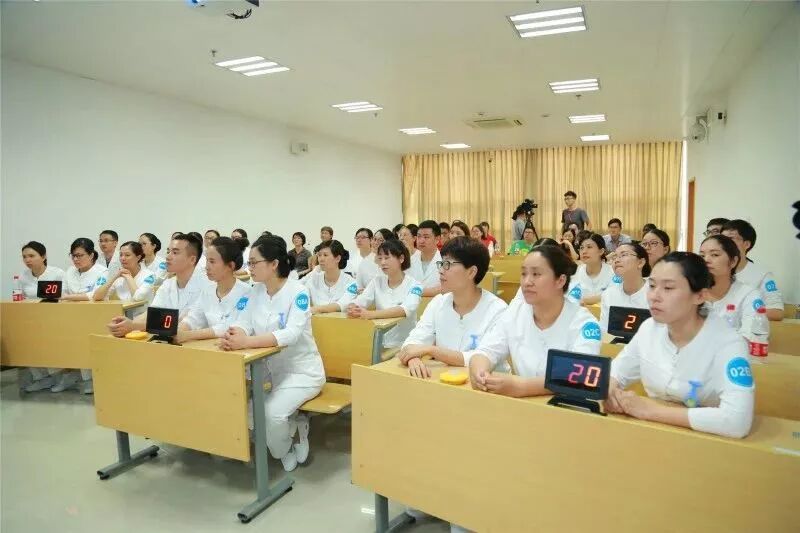 决赛的理论抢答环节是“最强护理人大脑”的比拼,比赛现场如火如荼,选手们认真思考,积极抢答,题目中涉及多个热点问题,内容涵盖内外儿妇各个学科。