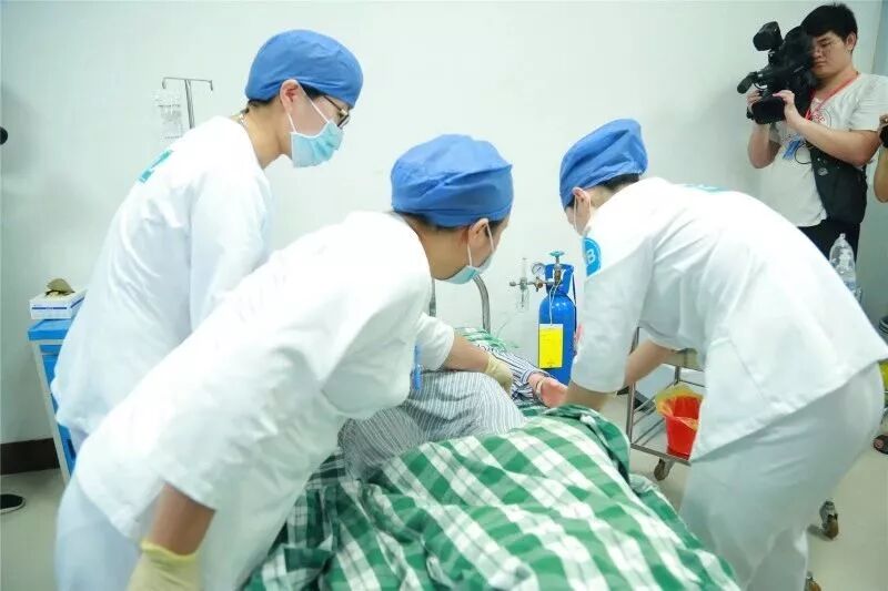 消化道大出血是肝硬化患者最可怕最凶险的并发症,部分患者常因出血凶猛而导致抢救无效死亡,是临床上极具代表意义的大抢救!案例设定为乙肝肝硬化患者消化道大出血急救,“患者突发呕血1000ml”,但常见和典型并不代表so easy!乙肝具有传染性,自我防护须想到;静脉通路不开通,一切行动无用途;备血、监护虽重要,评估、卧位要顾及;患者循环要衰竭,快速补液太重要;抢救用物必备齐,三腔二囊别忘记……这些点,优秀的选手们get到了。比赛中,参赛选手全心投入,动作流畅到位,团队沟通有效快捷,表现出扎实的基本功底,特别在如此危机的抢救中,始终不忘人文关怀,在各个环节中宽慰呕血害怕的患者,语气真挚温和,令人感动。