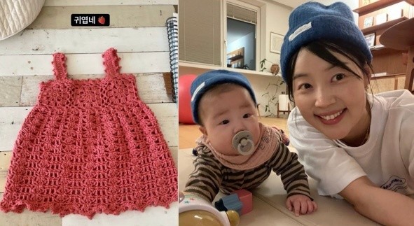 当天公开的照片中是韩智慧的妈妈为外孙女亲手织的粉红色连衣裙。