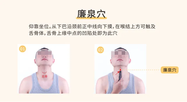 如果您平日里喜欢煲汤的话,可以选择乌梅、桑葚、粳米、南沙参、玉竹、百合、去芯莲子、银耳、芦根等食药两用的材料。身体自带的“水源”天干物燥,除了在吃的方面为自己补充水分以外,我们身体还自带着几个「水源」,能够调动体内精气化生体液来缓解干燥的问题:廉泉穴这个穴位别名叫「本池穴」。本,根本也;池,储液之器也。本池的意思就是指这个穴位是任脉水液的收聚之地。我个人的体会是,刺激这个穴位,能明显感觉到唾液分泌增加,在喉咙干痒、肿痛,声音嘶哑甚至失声的时候,这个穴位能救急。