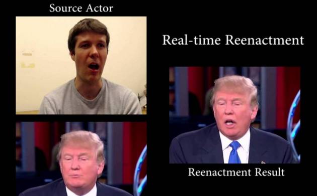 和华盛顿那种假把式不一样的是,Face2Face可以直接把你的脸部动作,表演换到任意一个你想要替代的人身上!!!比如......川普先生!